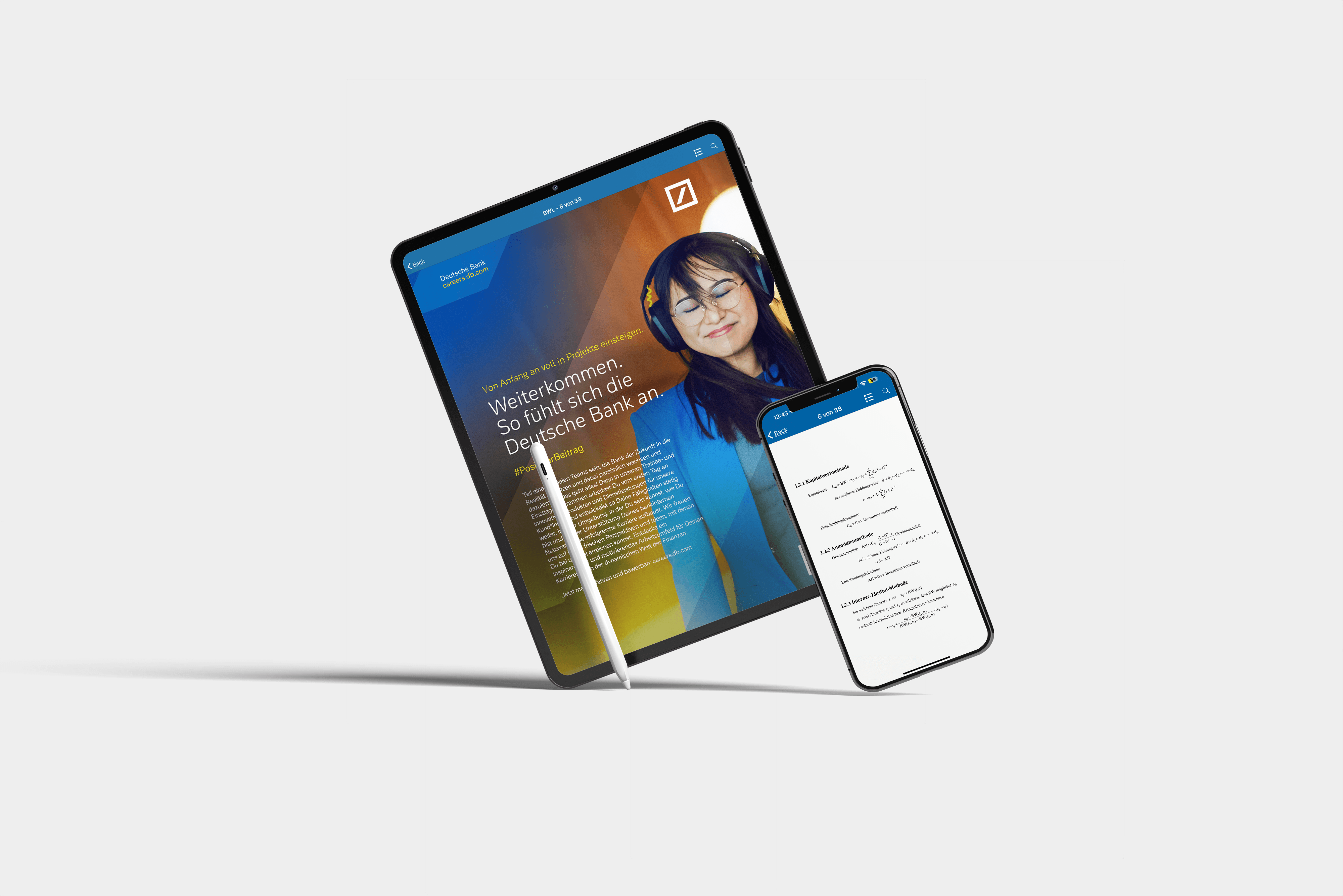Die WiWi App überzeugt nicht nur durch ihren Inhalt, sondern auch durch ihre Reichweite: Sie läuft auf Smartphones und Tablets, ist für iOS und Android optimiert und ermöglicht jederzeit flexible Werbemotivwechsel – kostenlos und ohne technischen Aufwand. Die Platzierung erfolgt als Full Page Ad im DIN-A5-Format – direkt beim Wechsel zwischen den Übungsaufgaben und Fachinhalten. So sind Sie immer im Blick – unübersehbar, professionell und zielgerichtet.
